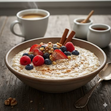 Más Proteína: Añade $1$ scoop de proteína en polvo (vainilla o chocolate) al final de la cocción (o al mezclar si es overnight oats) y remueve bien. O puedes incorporar yogur griego.
